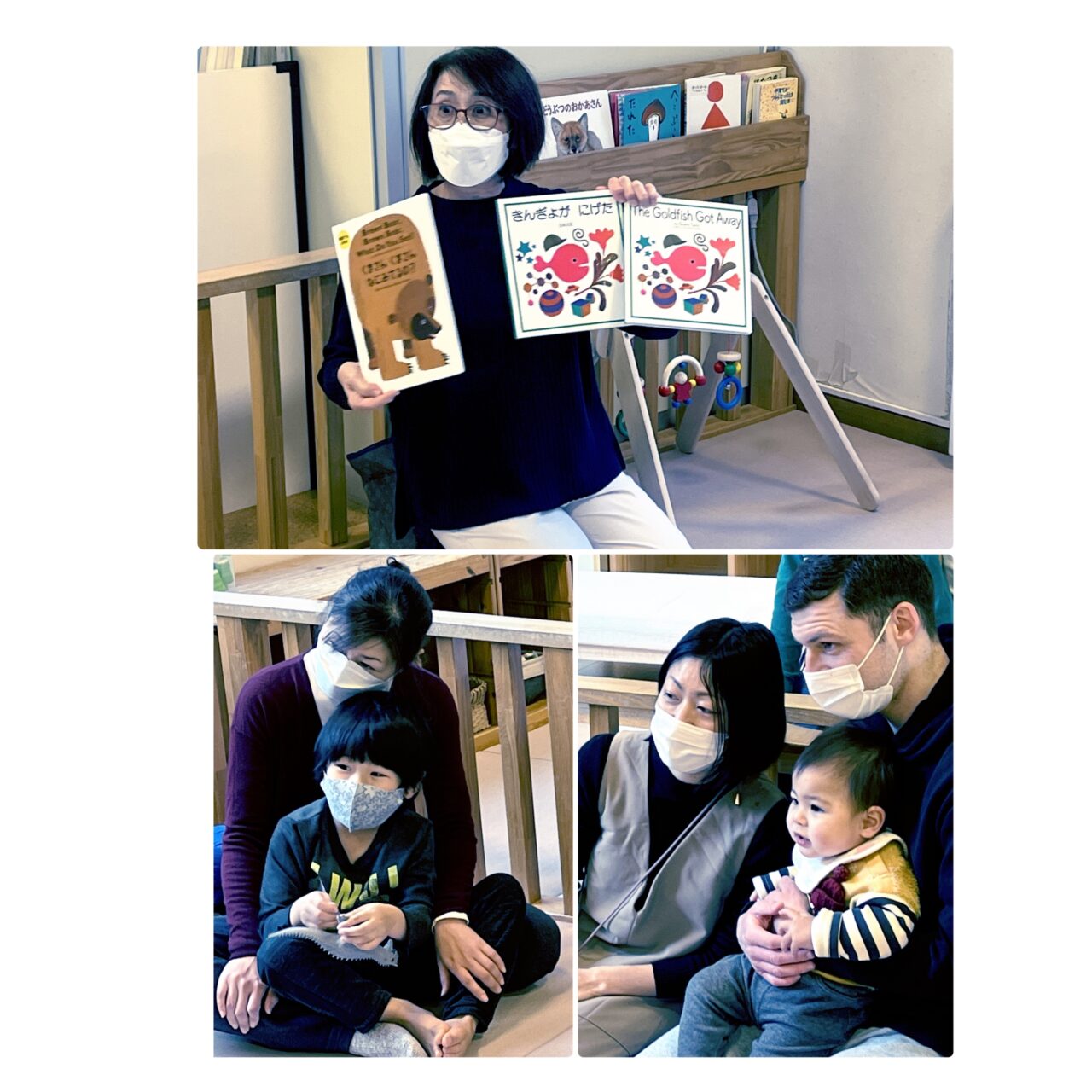 絵本「きんぎょがにげた」など日本語と英語で語ってくださり、子どもたちも興味津々。