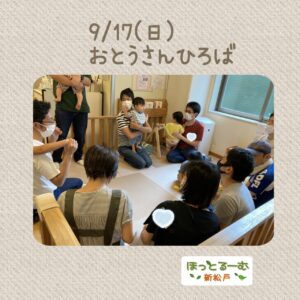2023年9月15日 / 最終更新日時 : 2023年9月15日 ほっとるーむ新松戸STAFF ひろばの様子 9月の「ふれあい遊び」 9月13日(水) 保坂さんの 『ふれあい遊び』 栗、柿、いもなどの秋の味覚が登場し、 何を食べようか迷ってしまう場面も…。 外はまだまだ暑いですが、 ひろばでは一足先に秋をいっぱい感じました🍁 ふれあい遊びは、 毎月第2水曜日に実施しています! 予約は不要です。 ぜひ、遊びにきてくださいね(^^)/ ☆次回のふれあい遊び☆ 10月11日(水) 10:30〜(30分程度) 予約不要で利用できます 【開館日】火・水・木・金・土・日10:00~18:00 相談員による子育て相談、オンライン広場等も行っています。詳しくは利用案内またはお知らせをご覧ください。 047-375-8737お問い合わせ FacebookXBlueskyHatenaCopy