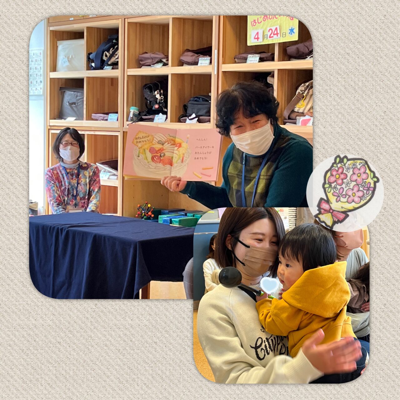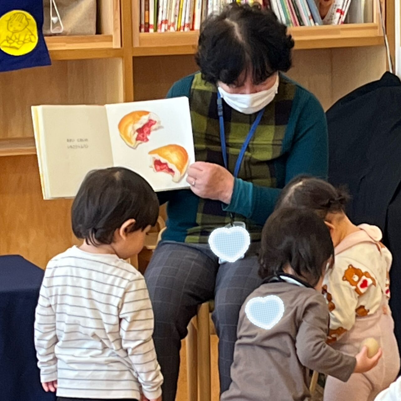 くだものとケーキの読み聞かせでは、おいしそうなイラスト に思わずお子さんが近づいてしまいます♡