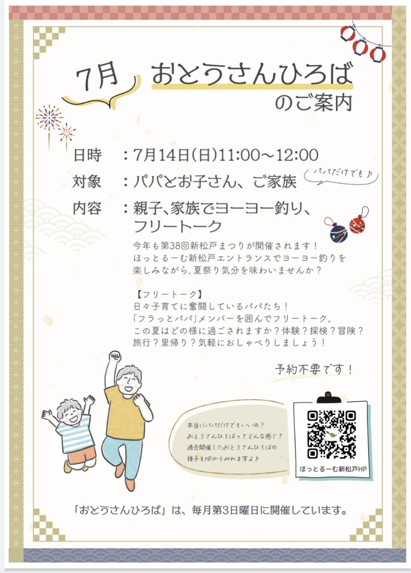 ◎親子、家族でヨーヨー釣り。 今年も第38回新松戸まつりが開催されます!ほっとるーむ新松戸エントランスでヨーヨー釣りを楽しみながら、夏祭り気分を味わいませんか?