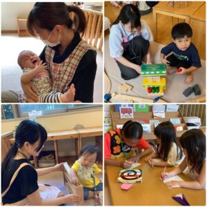 2024年8月16日 / 最終更新日時 : 2024年8月16日 ほっとるーむ新松戸STAFF ひろばの様子 ほっと♪ひとこま 非常に強い台風が近づいてきていますで、 お気をつけてお過ごしくださいね。 最近のひろばの様子です。 ふれあい遊び、 Let’s体験ボランティアの学生さんたち、 おとうさんたち、 いろいろな交流ができました^^ まだまだ暑い日が続くようですので、 体調にはお気をつけくださいね。 予約不要で利用できます 【開館日】火・水・木・金・土・日10:00~18:00 相談員による子育て相談、オンライン広場等も行っています。詳しくは利用案内またはお知らせをご覧ください。 047-375-8737お問い合わせ FacebookXBlueskyHatenaCopy