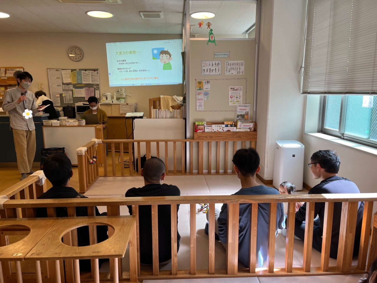 2024年10月29日 / 最終更新日時 : 2024年10月29日 ot*** ひろばの様子 10月のおとうさんひろば 10/20(日)おとうさんひろば開催しました。 今回は育休を1年取得中のフラッとパパメンバーの前島さんのお話。 育休に至るまでの経過、取得のための職場との交渉、夫婦での育児、 家事分担の話し合い、収入が減ることを想定しての計画的な貯蓄、 育休取得中の現在感じるメリットなどとても興味深い内容でしたよ! その後まさに育休中のパパたち同士の中身の濃い交流タイムも! おとうさんひろばは毎月第3日曜日開催ですよ~♪ 予約不要で利用できます 【開館日】火・水・木・金・土・日10:00~18:00 相談員による子育て相談、オンライン広場等も行っています。詳しくは利用案内またはお知らせをご覧ください。 047-375-8737お問い合わせ FacebookXBlueskyHatenaCopy