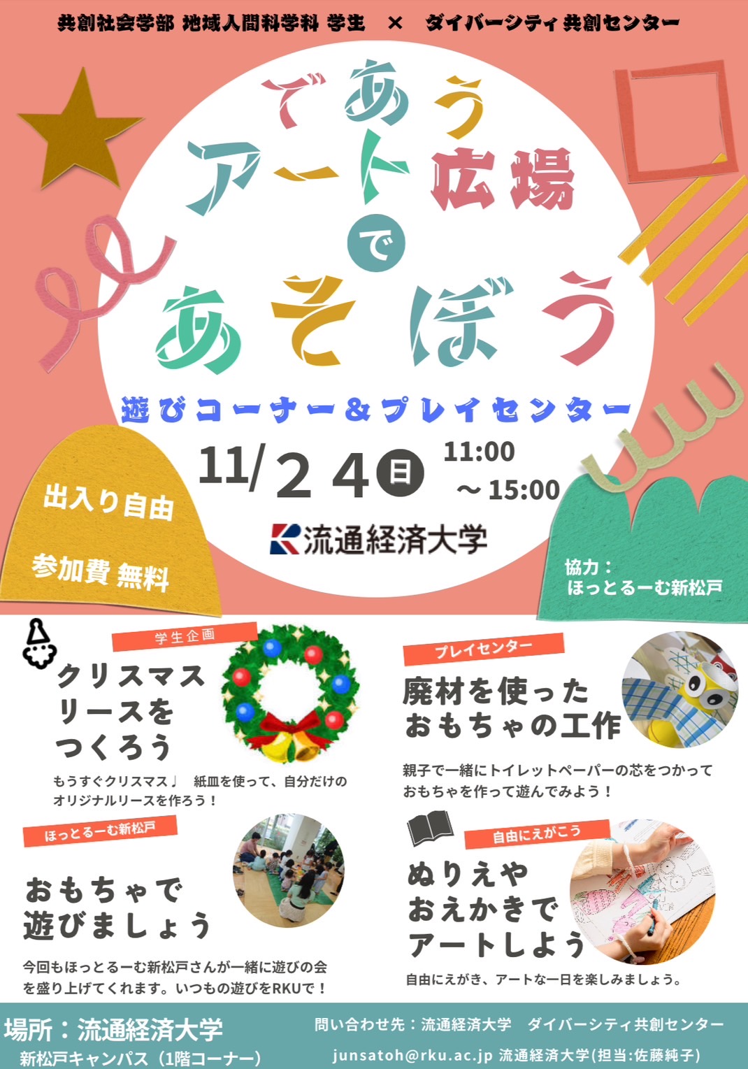 11/24(日)「であうアート広場であそぼう」1階コーナーに、 ほっとるーむ新松戸も参加します♪