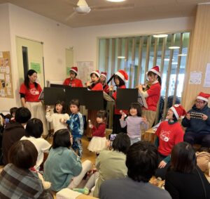 ママさんブラス森のおんがくたいアンサンブルチームの皆さんをお招きし、クリスマスソングやテレビでお馴染みの曲など生演奏の素敵な音色に聴き入りました♪