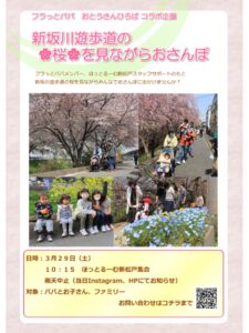 おとうさんひろば みんぐる フラっとパパコラボ企画 『新坂川遊歩道の桜を見ながらおさんぽ』のお知らせ