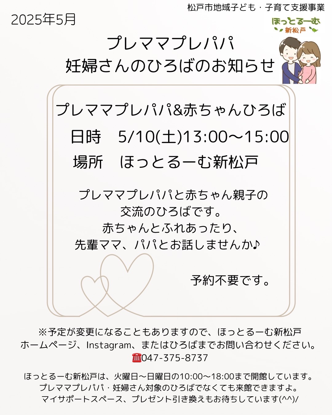 2025年5月プレママプレパパ・妊婦さんひろばのお知らせ
