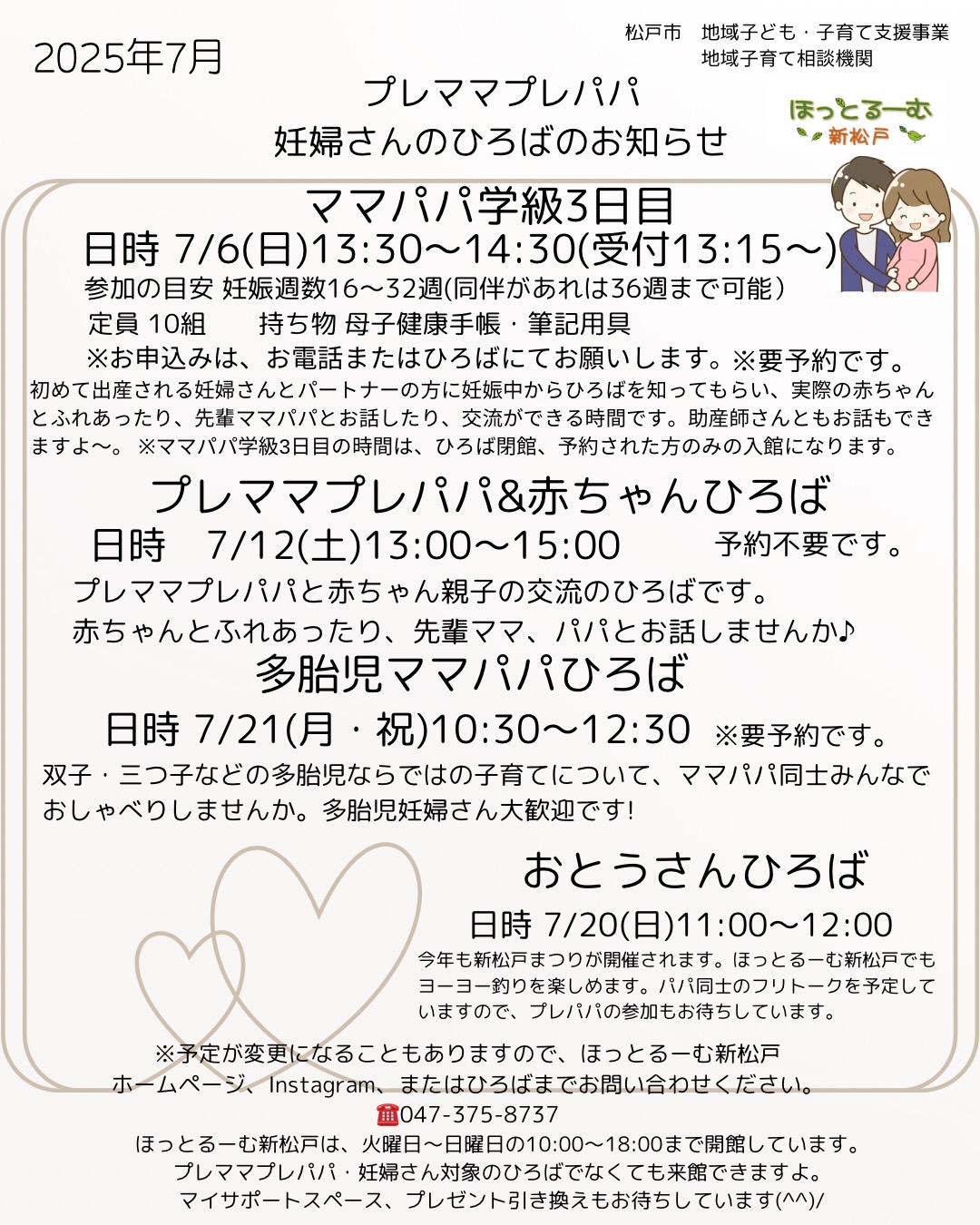 2025年7月プレママプレパパ・妊婦さんひろばのお知らせ