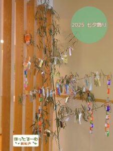 2025年7月4日 / 最終更新日時 : 2025年8月26日 ほっとるーむ新松戸STAFF ひろばの様子 ほっとるーむ新松戸 2025七夕飾り もうすぐ七夕ですね。 今年も地域の方が大きな笹を届けてくださいました! どうぞ、短冊に願い事を書きに来てくださいね🎋 それにしても、毎日暑いですね。 こまめな水分補給お忘れなく! ほっとるーむ新松戸は土・日・祝日も開館していますので、どうぞいつでも涼みに来てくださいね😊 予約不要で利用できます 【開館日】火・水・木・金・土・日10:00~18:00 相談員による子育て相談、オンライン広場等も行っています。詳しくは利用案内またはお知らせをご覧ください。 047-375-8737お問い合わせ FacebookXBlueskyHatenaCopy