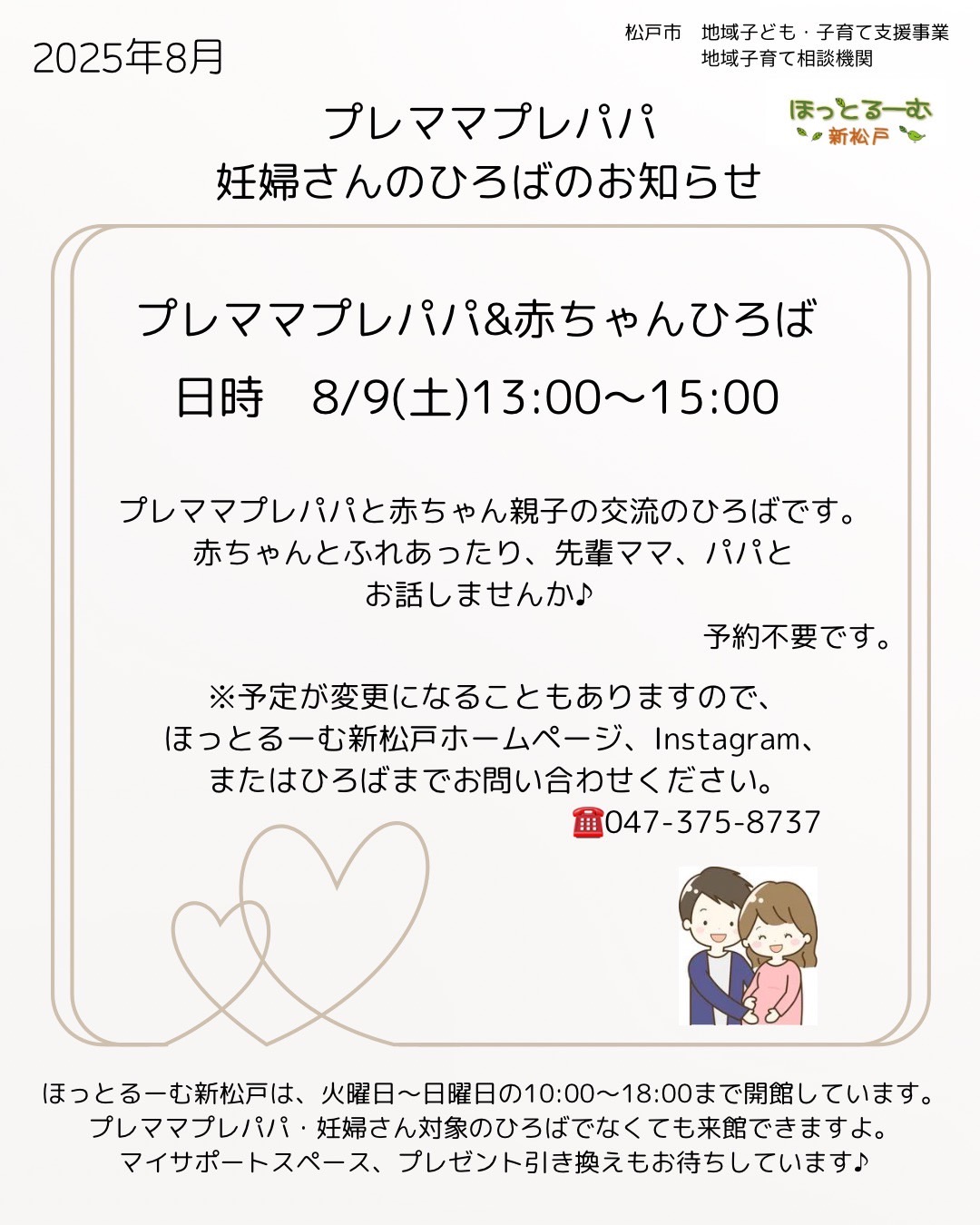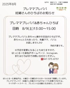 2025年8月プレママプレパパ・妊婦さんひろばのお知らせ