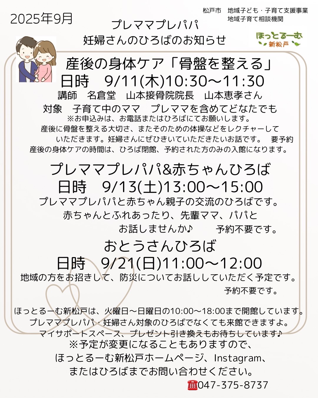 2025年9月プレママプレパパひろばのお知らせ