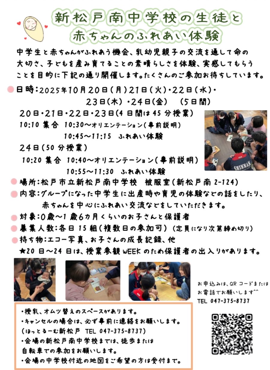 新松戸南中学校の生徒と赤ちゃんのふれあい体験のお知らせ