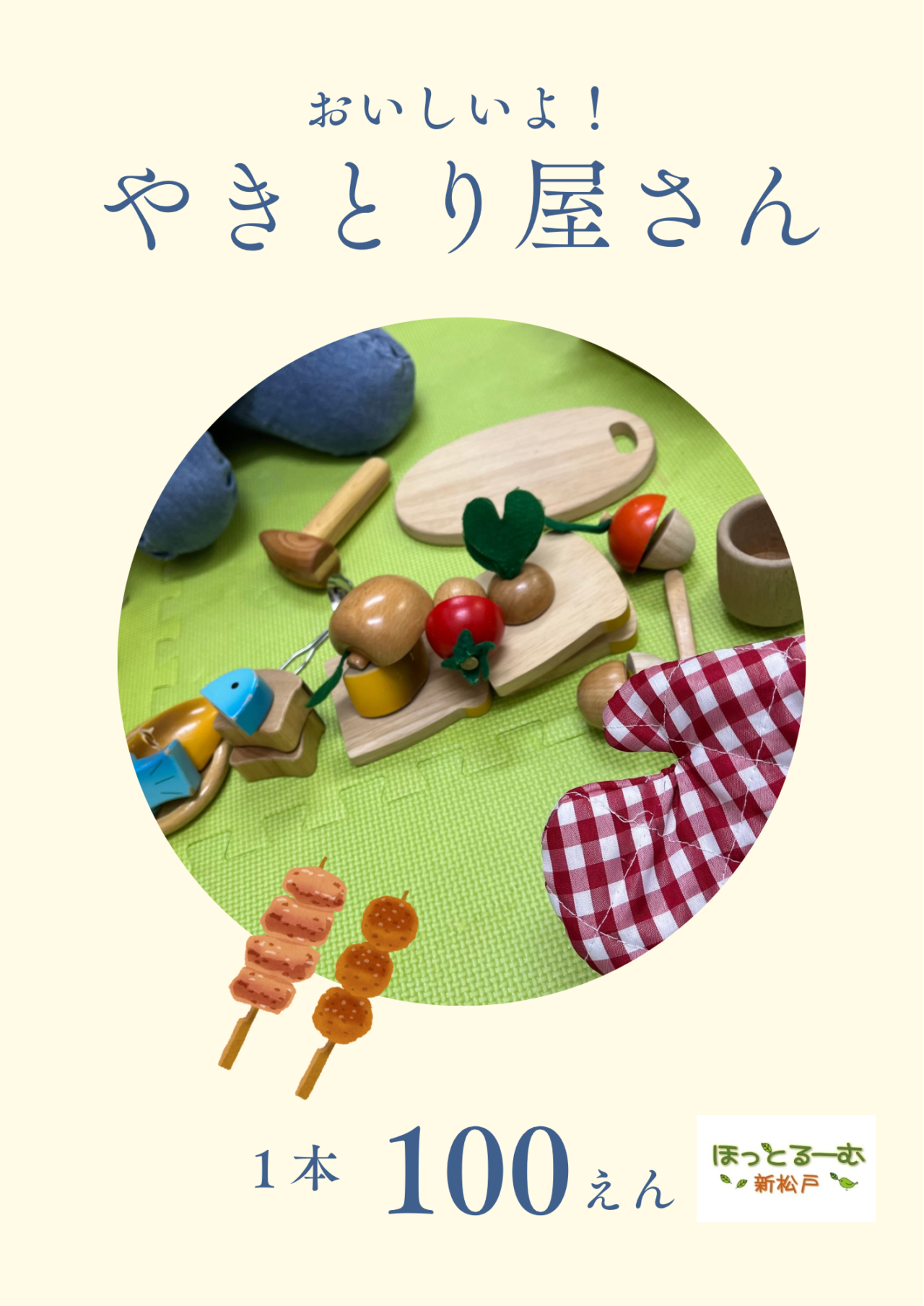 おままごとをしていると、やきとり屋さんがオープンしていました🫢