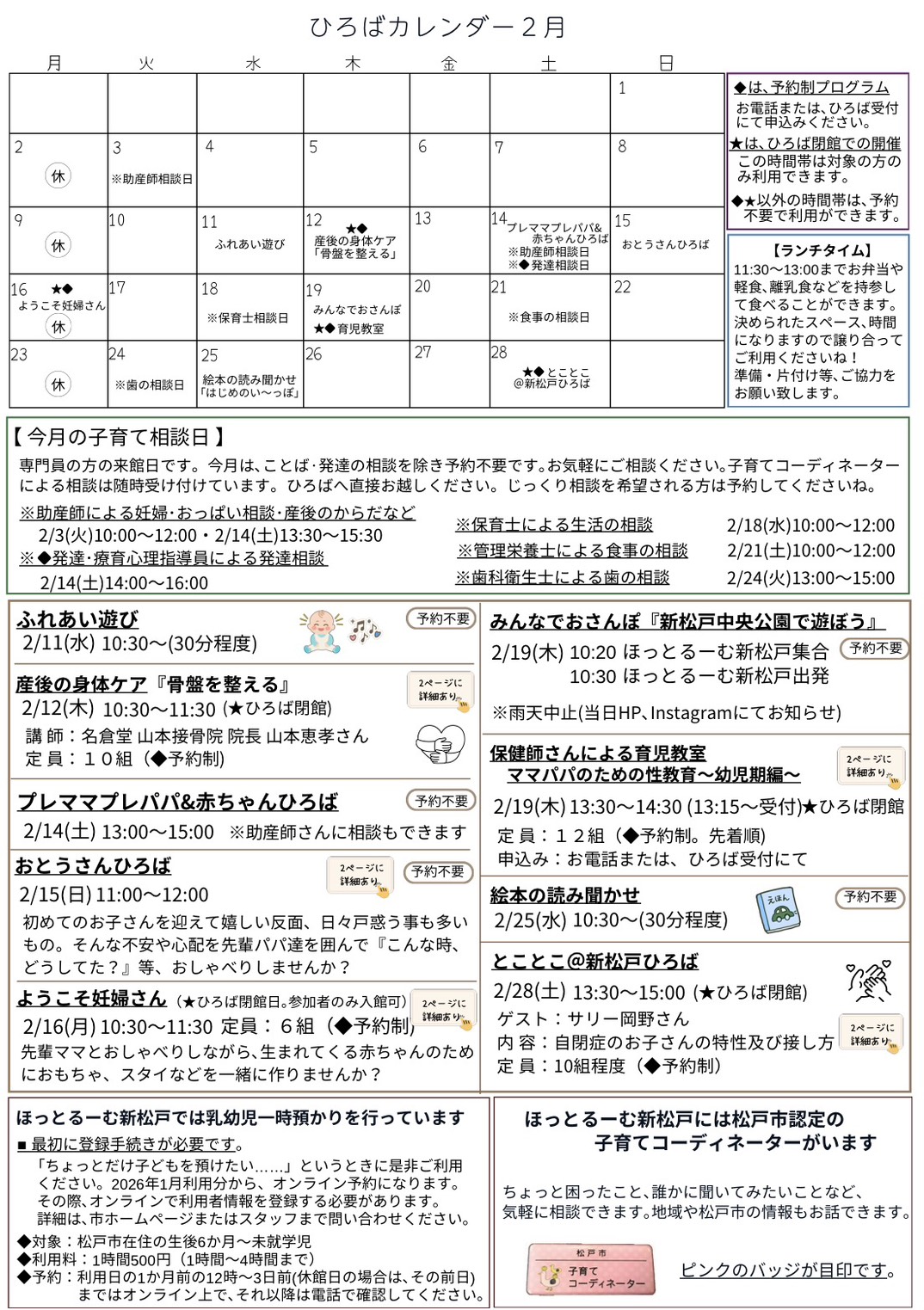 ※産後の身体ケアの時間はひろば閉館となります。