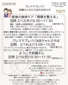 2026年2月プレママプレパパ・妊婦さんひろばのお知らせ