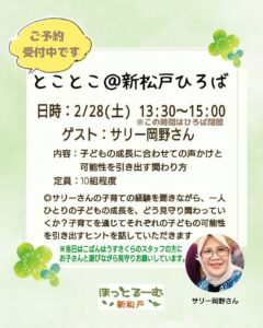 ■サリーさんの子育ての経験を聞きながら、一人ひとりのこどもの成長を、どう見守り関わっていくか? 子育てを通じてそれぞれの子どもの可能性を引き出すヒントを話していただきます。