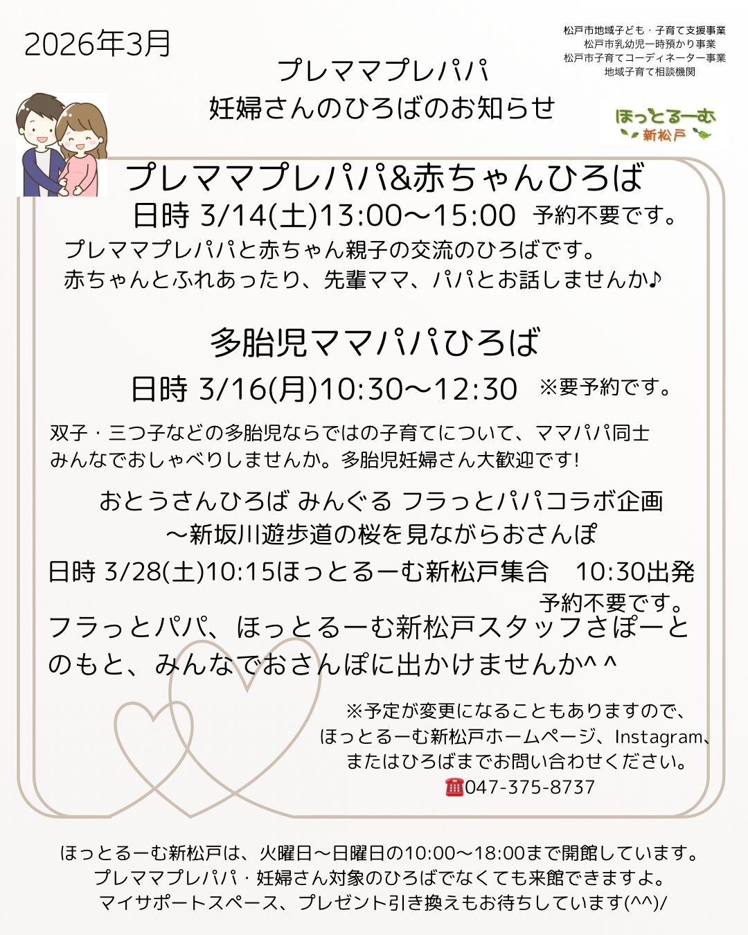 2026年3月プレママプレパパ・妊婦さんひろばのお知らせ