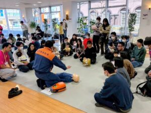 3月7日、流通経済大学の学生さんと共に「乳幼児の子を持つ親のための救命救急講座」を開催しました!