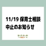 2025年11月18日 / 最終更新日時 : 2025年11月18日 ほっとるーむ新松戸STAFF お知らせ 保育士相談 中止のお知らせ 11/19(水) 10:00〜12:00 『保育士相談』は 都合により中止になりました。 ■次回の相談日 12/17(土) 10:00〜12:00