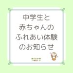 2025年10月7日 / 最終更新日時 : 2025年10月7日 ot*** お知らせ 新松戸南中学校の生徒と赤ちゃんのふれあい体験のお知らせ ~新松戸南中学校の生徒と赤ちゃんのふれあい体験のお知らせ~ 今年度も中学生と赤ちゃんがふれあう機会、乳幼児親子の交流を通して命の大切さ、子どもを産み育てることの素晴らしさを体験・実感してもらうことを目的に下記の通り開催し […]