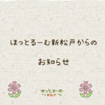 2023年12月7日 / 最終更新日時 : 2023年12月7日 ほっとるーむ新松戸STAFF お知らせ マイサポートスペースのお知らせ ☆マイサポートスペース☆ マイサポートスペースご存じですか? 「マイ・サポート・スペース」とは、妊婦さん及び概ね0歳から2歳の保育園などの保育サービスを利用していないお子さんがいるご家庭が、「身近に相談したり利用できる場 […]