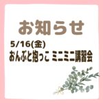 2025年5月23日 / 最終更新日時 : 2025年5月23日 ほっとるーむ新松戸STAFF ひろばの様子 おんぶと抱っこ ミニミニ講習会 5/16(金)おんぶと抱っこ ミニミニ講習会 ママからの「おんぶってどうやってしたらいいの?」の声から実施されたこの講習会。前日のお知らせにも関わらず、多くのママパパお子さんが参加がありました! 初めてのおんぶ紐やもっこ […]