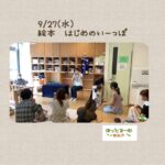 2023年9月29日 / 最終更新日時 : 2023年9月29日 ほっとるーむ新松戸STAFF ひろばの様子 9月の「絵本 はじめのいーっぽ」 9月27日(水)は「絵本 はじめのいーっぽ」さんによる絵本の読み聞かせ。 まずは秋を感じる“お団子くっついた”の手遊び♪ 絵本に合わせて、バナナやブドウを『パク』っとする姿がとっても可愛らしかったです(^^) 秋の絵本の […]