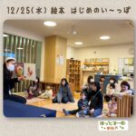 2025年1月29日 / 最終更新日時 : 2025年1月29日 ほっとるーむ新松戸STAFF ひろばの様子 1/22(水) 絵本 はじめのい〜っぽ 1/22(水) 絵本 はじめい〜っぽさんの読み聞かせ。 1月の読み聞かせは、 みんな大好きだるまさんの絵本が登場!! 「だるまさんが…」 のフレーズをママ達が一緒に口ずさんでくれていました♪ページをめくるたび […]