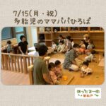 2024年7月21日 / 最終更新日時 : 2024年7月21日 ほっとるーむ新松戸STAFF ひろばの様子 多胎児のママパパひろば 7/15(月・祝)多胎児のママパパひろば 今年度初めての『多胎児のママパパひろば』 始まって以来の8組の参加でした! ネパールのプレママプレパパ、 11ヶ月〜3歳の男の子、女の子 ミックスちゃんの家族(もちろんパパも)が […]
