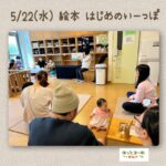 2024年5月25日 / 最終更新日時 : 2024年5月25日 ほっとるーむ新松戸STAFF ひろばの様子 5月の「絵本 はじめのいーっぽ」 5月の『絵本 はじめのいーっぽ』さんの読み聞かせ 手遊び「あたま かた ひざ ぽん」をみんなで楽しんで、 今月の読み聞かせのはじまりはじまり〜(^^) 絵本に向かって「こんにちは〜」 一緒に「ワンワン」 夢中になるお子さ […]