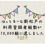 2023年1月15日 / 最終更新日時 : 2023年1月15日 ot*** お知らせ 利用登録者組数が10,000組に達しました(^^)/ 2023年1月11日(水)一並びの佳き日に 10,000組目の親子さんが ほっとるーむ新松戸に来館されました。 2009年5月に子育て中の親子さんが 少しでもホッとできる場が あったらいいなとの思いで オープンしてから、 […]