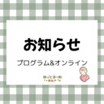 2025年6月30日 / 最終更新日時 : 2025年6月30日 ほっとるーむ新松戸STAFF お知らせ 7月のお知らせ(プログラム&オンライン) ☆ランチタイム☆ 時間:11:30~13:00 火曜日~日曜日 ※予約不要です。 ■親子でお弁当や軽食、離乳食などを持参して食べることができます。決められたスペース、時間になりますので譲り合ってご利用くださいね!準備、片 […]