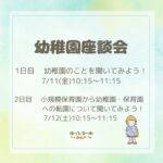 2025年6月27日 / 最終更新日時 : 2025年6月27日 ot*** お知らせ 幼稚園座談会のお知らせ ☆幼稚園座談会を下記の日時に開催します。 ☎️047-375-8737(ほっとるーむ新松戸)